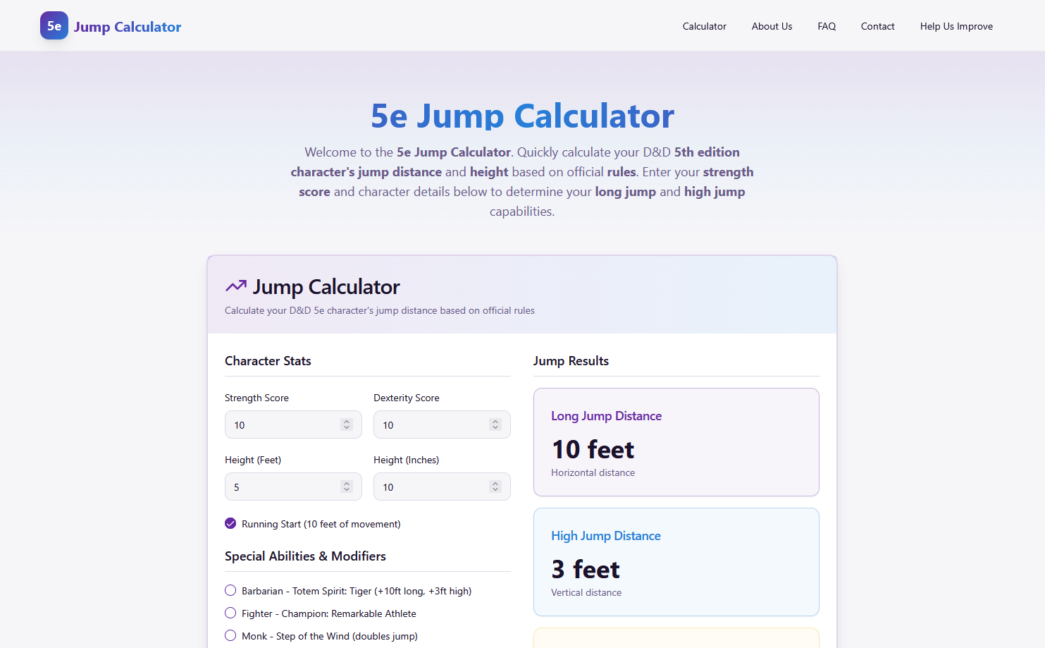 5e Jump Calculator is a simple online helper that takes the 5e jump rules and does the math for you.